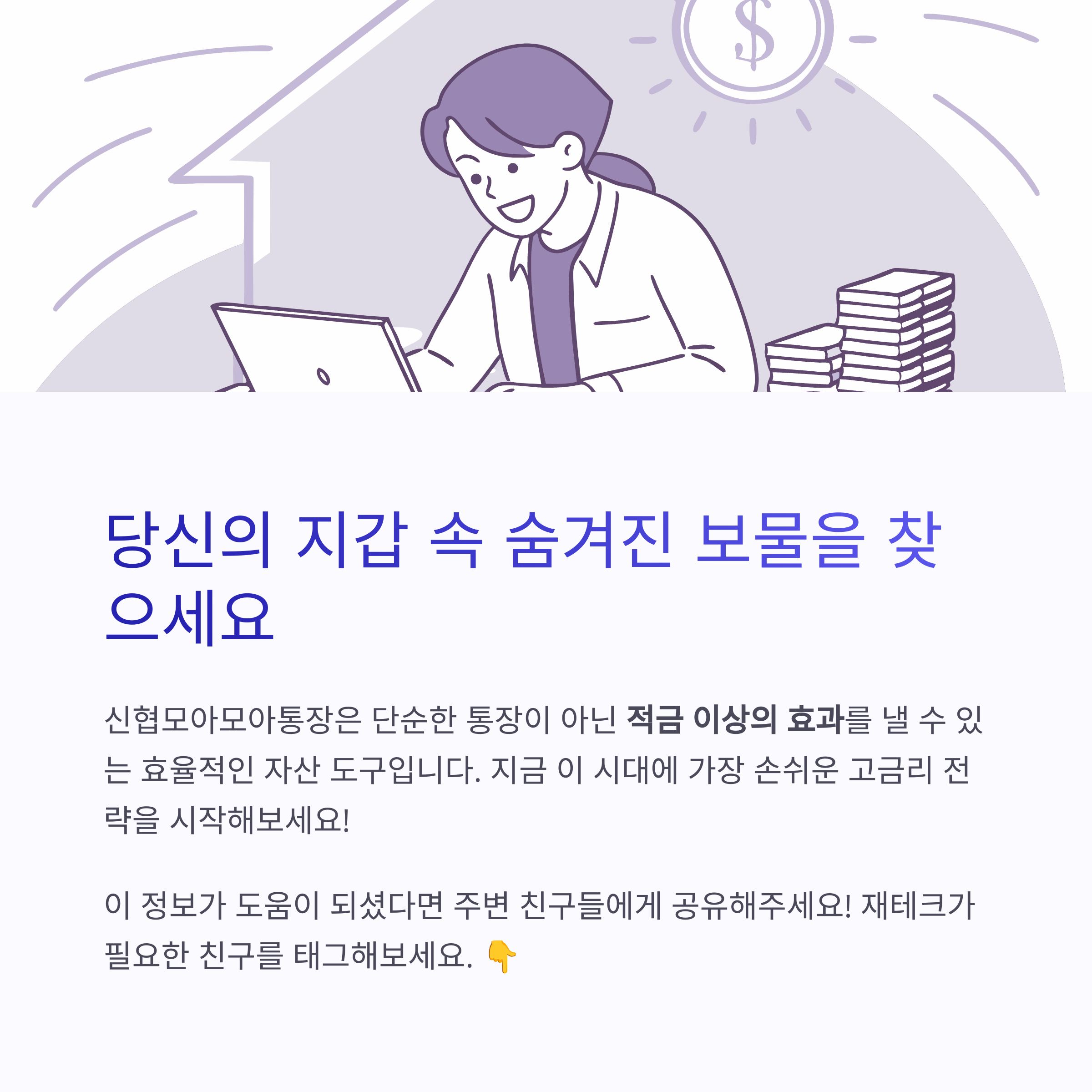 이 글에서는 신협모아모아통장의 특징, 장단점, 활용법 등을