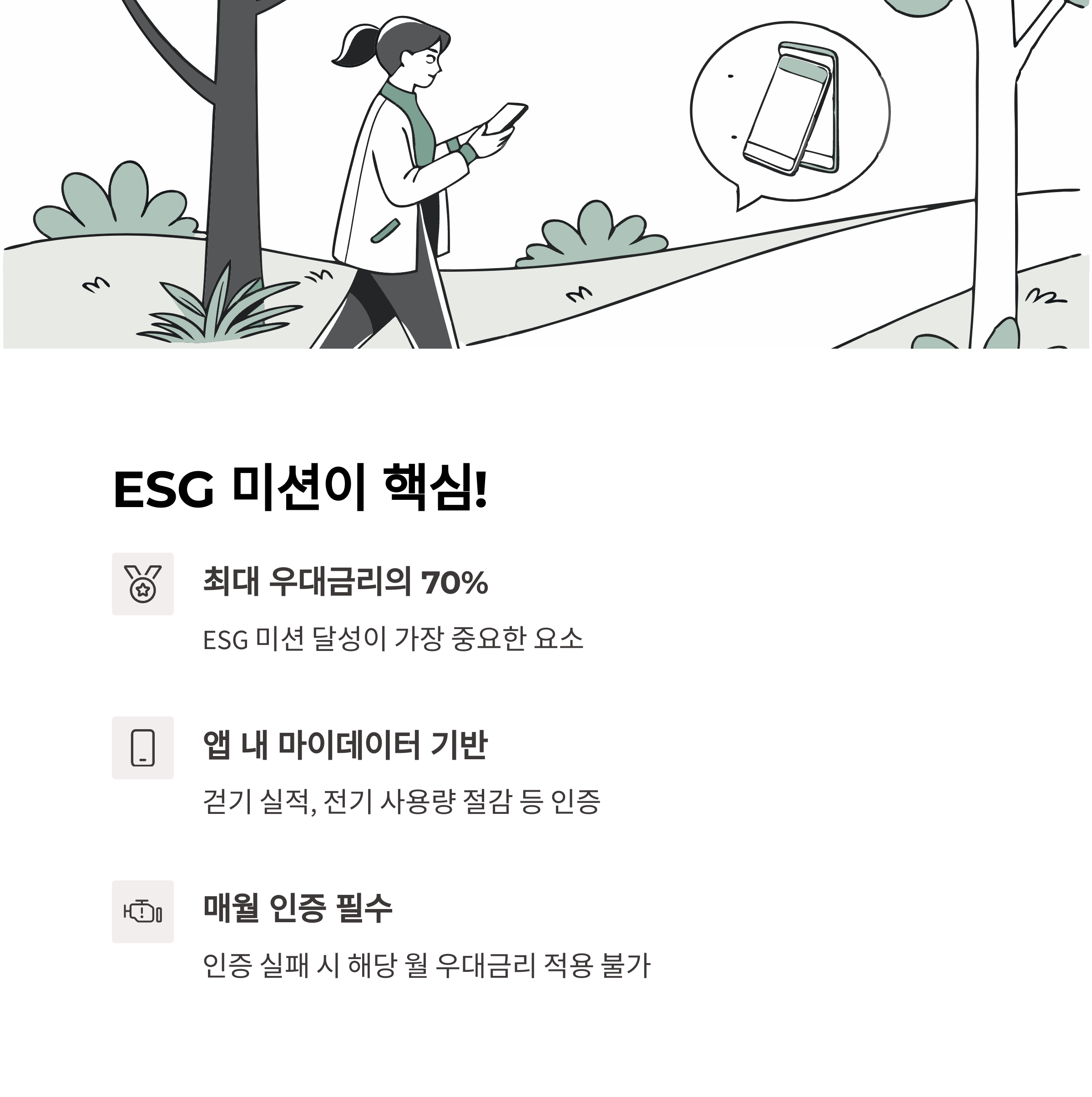 | ESG 미션 달성 | 매월 과제 인증 (걷기, 절전 등) | 연 1.0% |