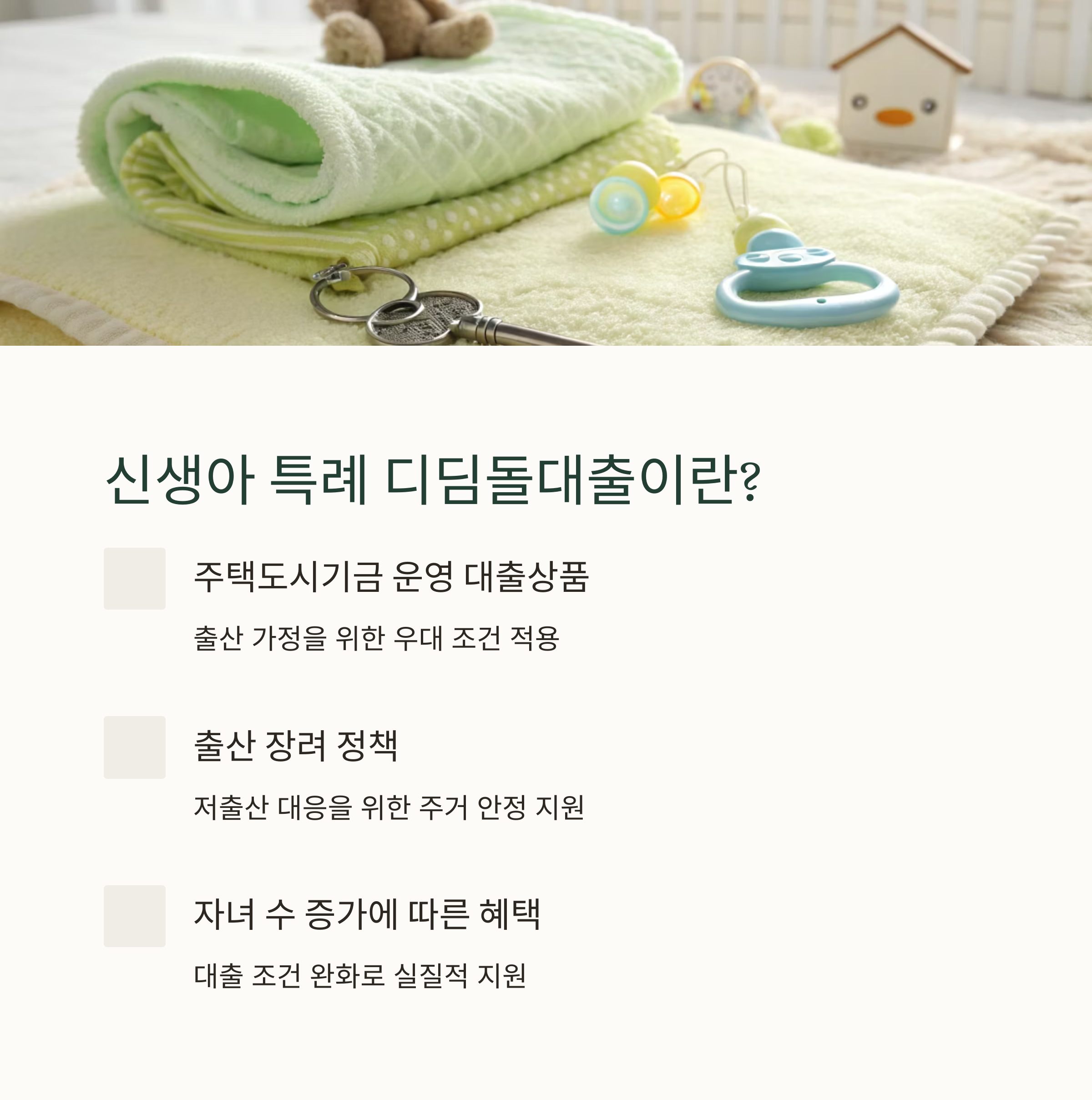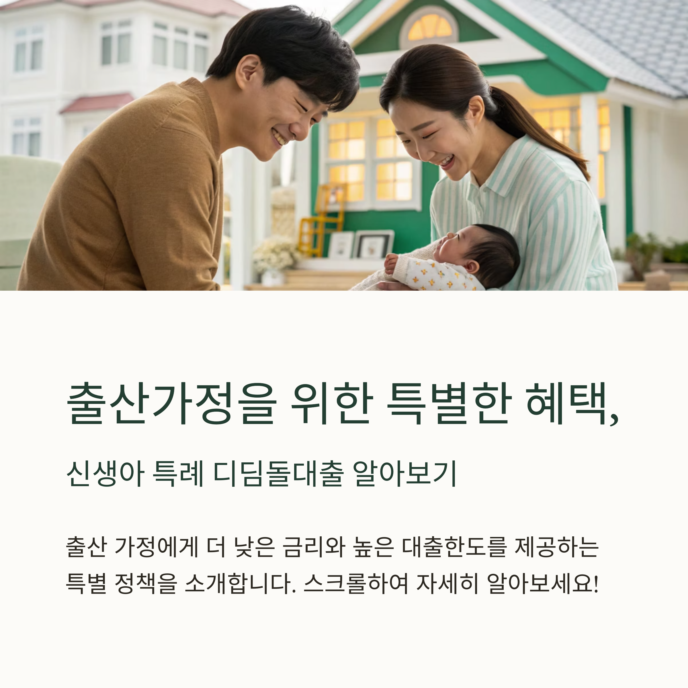 출산을 앞둔 가정이나 신생아를 둔 부모들에게 **디딤돌대출의 '신생아 특례'**는 매우 큰 도움이 되는 제도입니다.