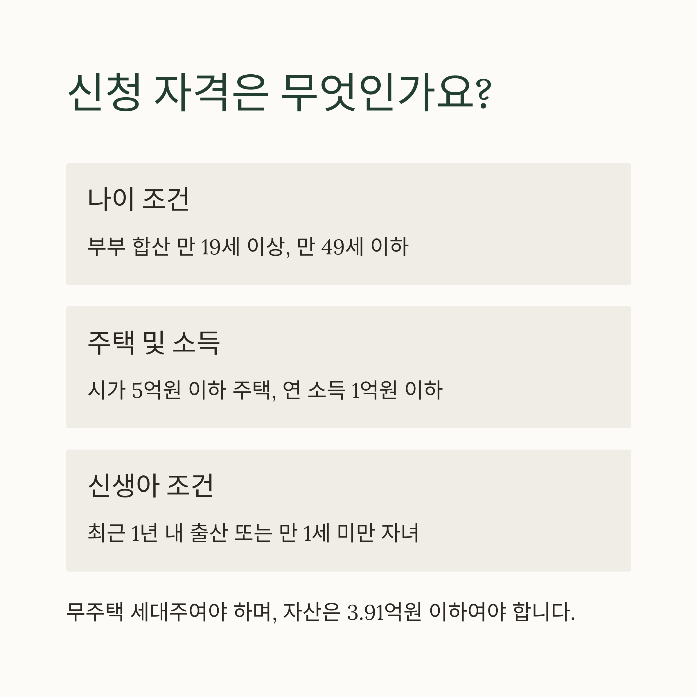 주택 가격, 소득, 자산 등 일부 요건은 유지되지만,