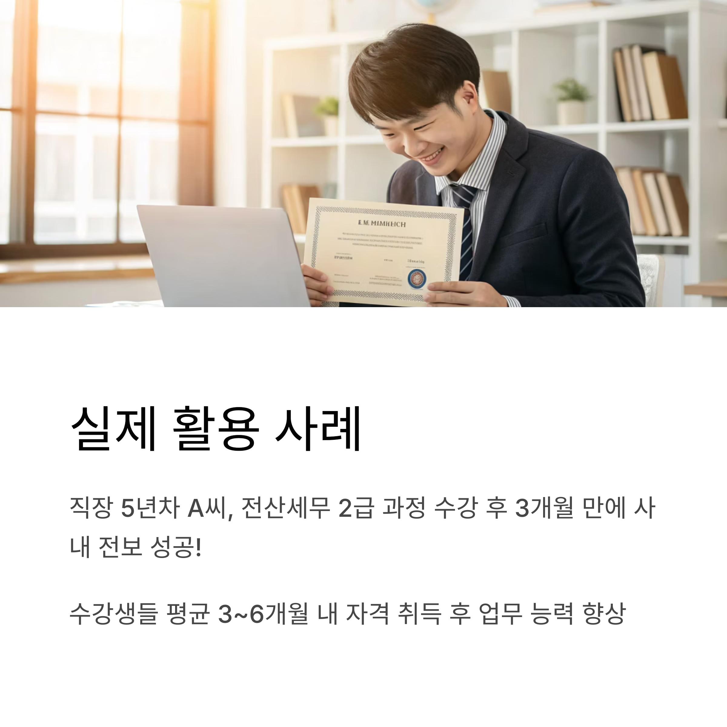 실제 카드 수강생들은 평균 3~6개월 내 자격 취득 후 업무 능력에 변화를 경험하고 있습니다.