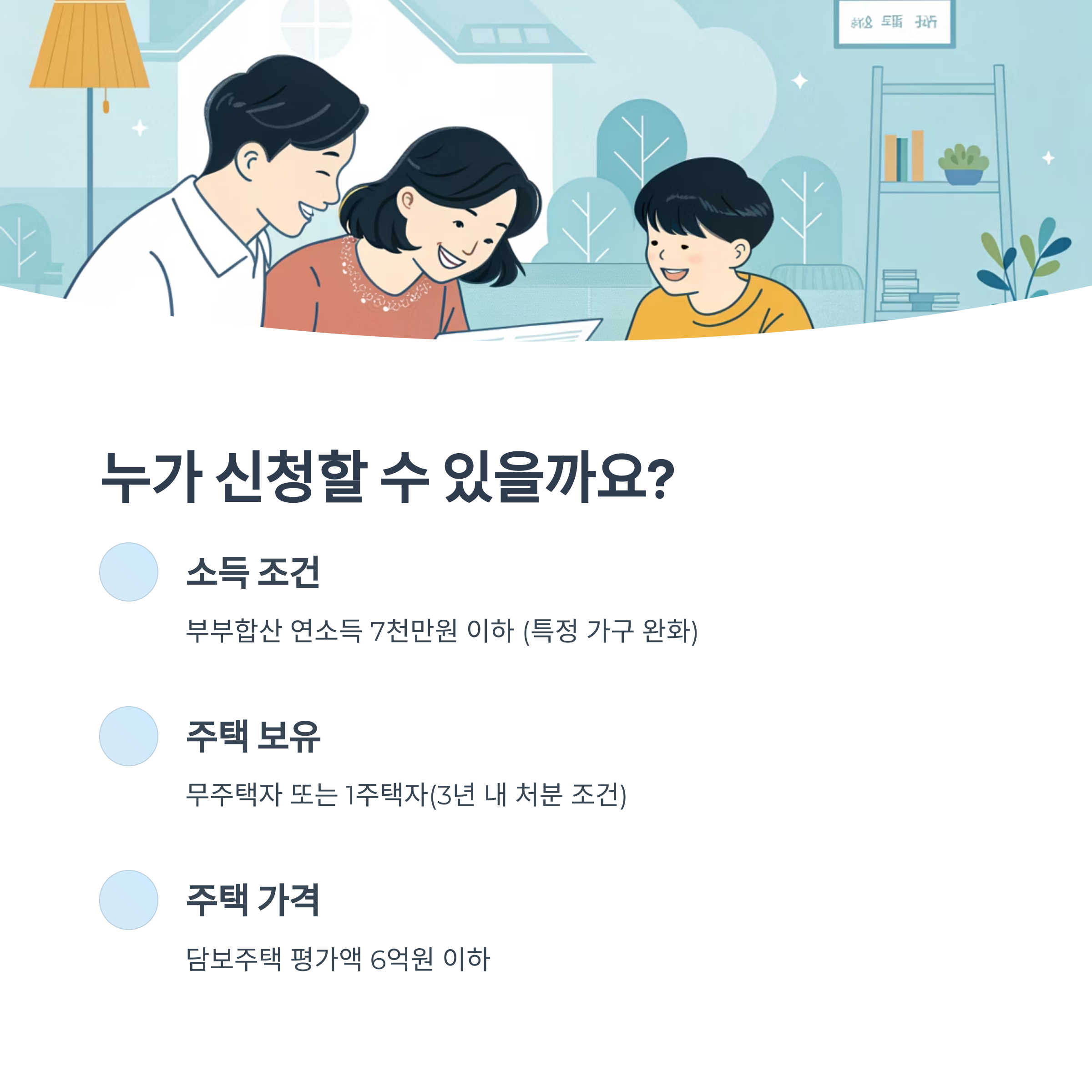 핵심 조건은 부부합산 연소득이 7천만원 이하여야 하며,