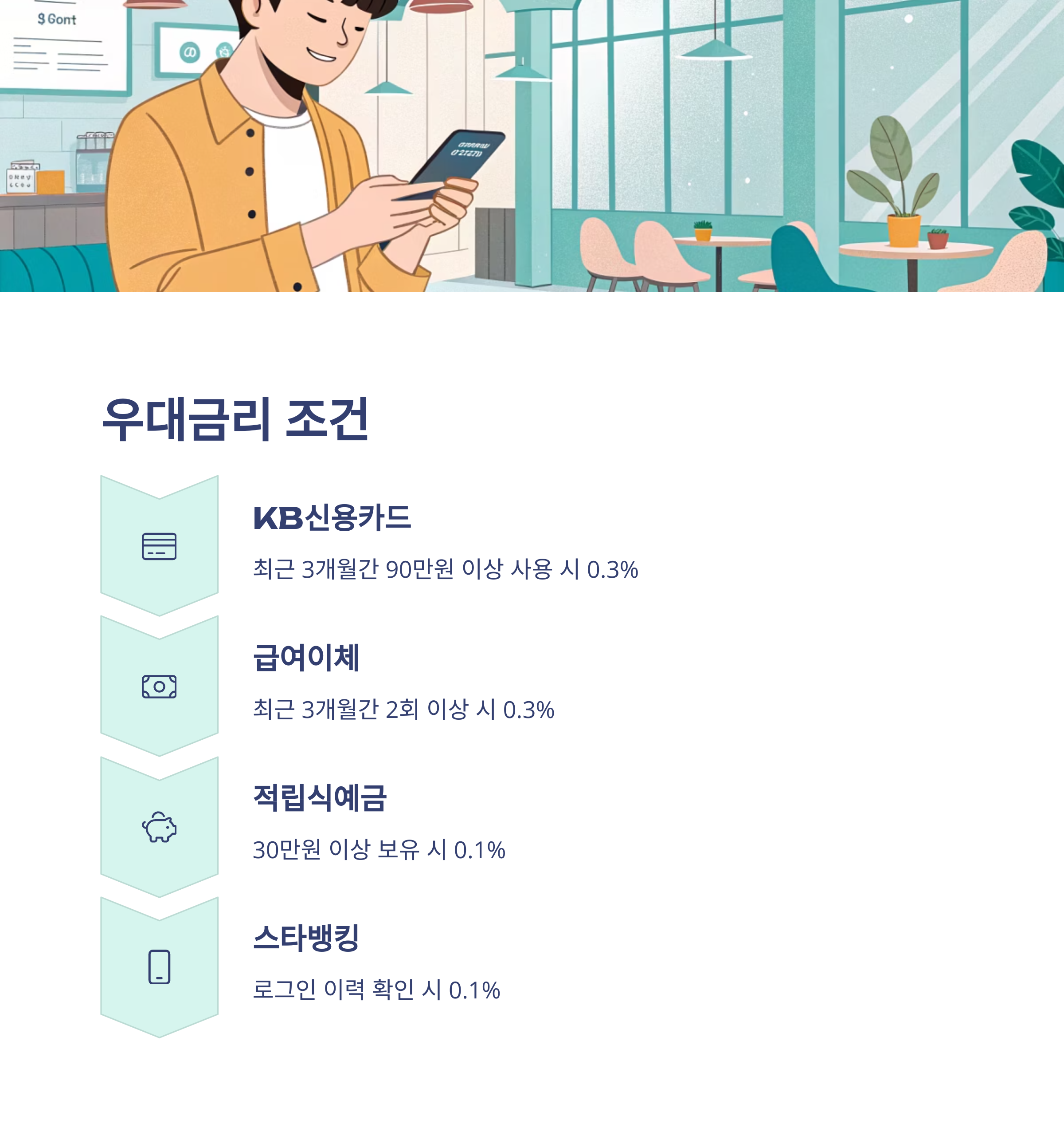 | KB신용카드 사용 | 최근 3개월간 90만원 이상 | 0.3% |