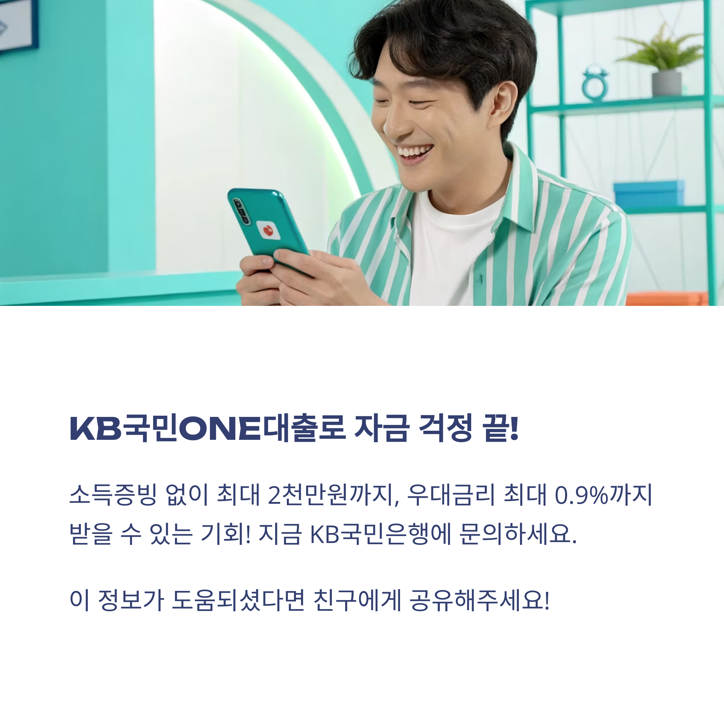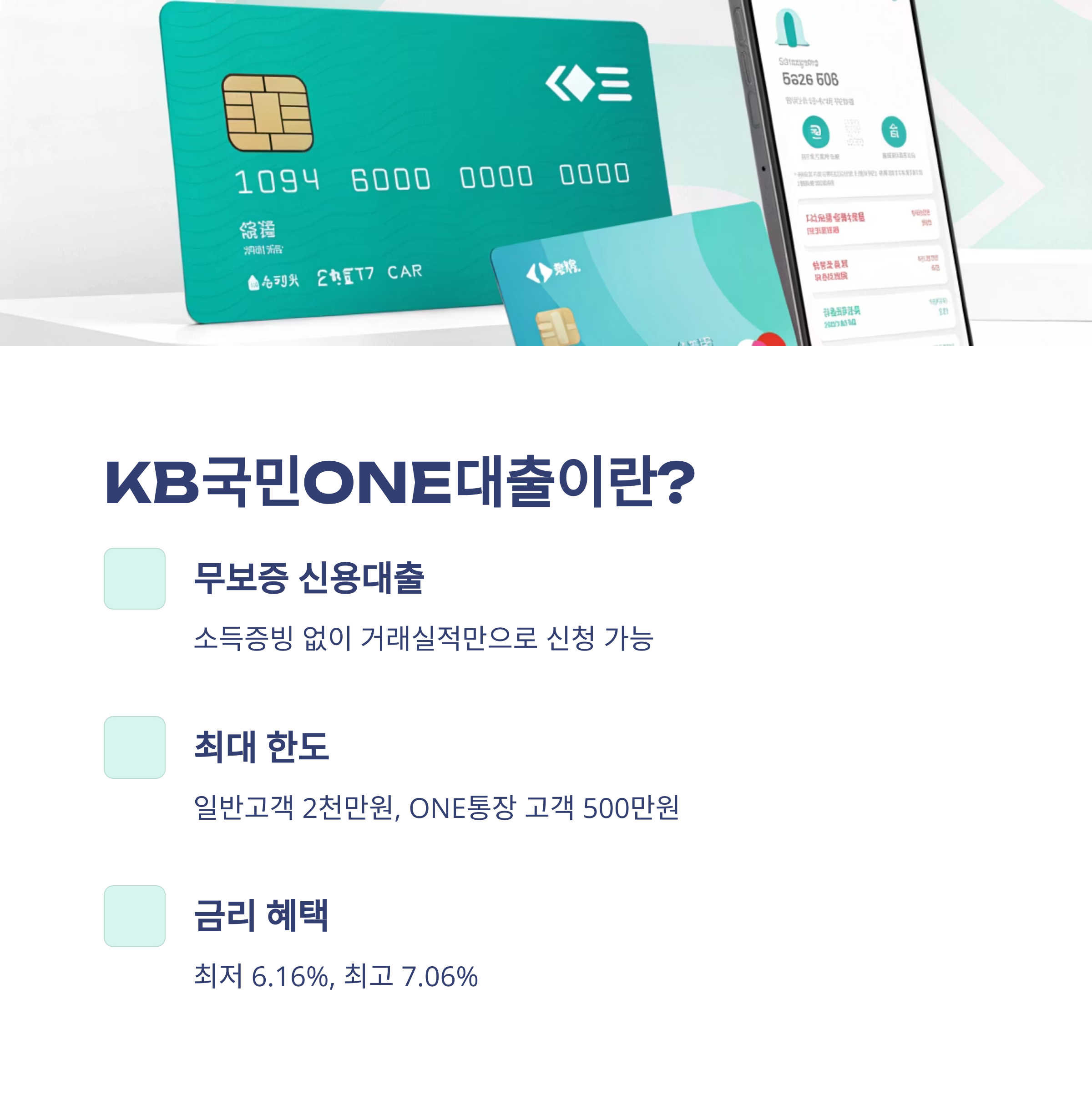 소득 증빙 없이도 신용만으로 대출 가능한 KB국민ONE대출의 모든 조건과 혜택을