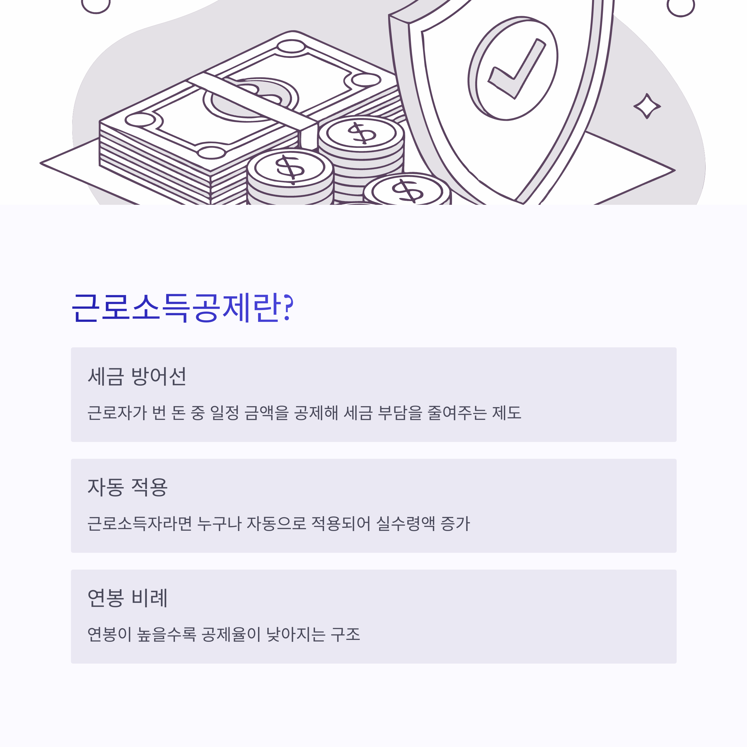 "근로소득공제는 근로자가 번 돈 중에서 일정 금액을 공제해 세금 부담을 줄여주는 제도입니다."