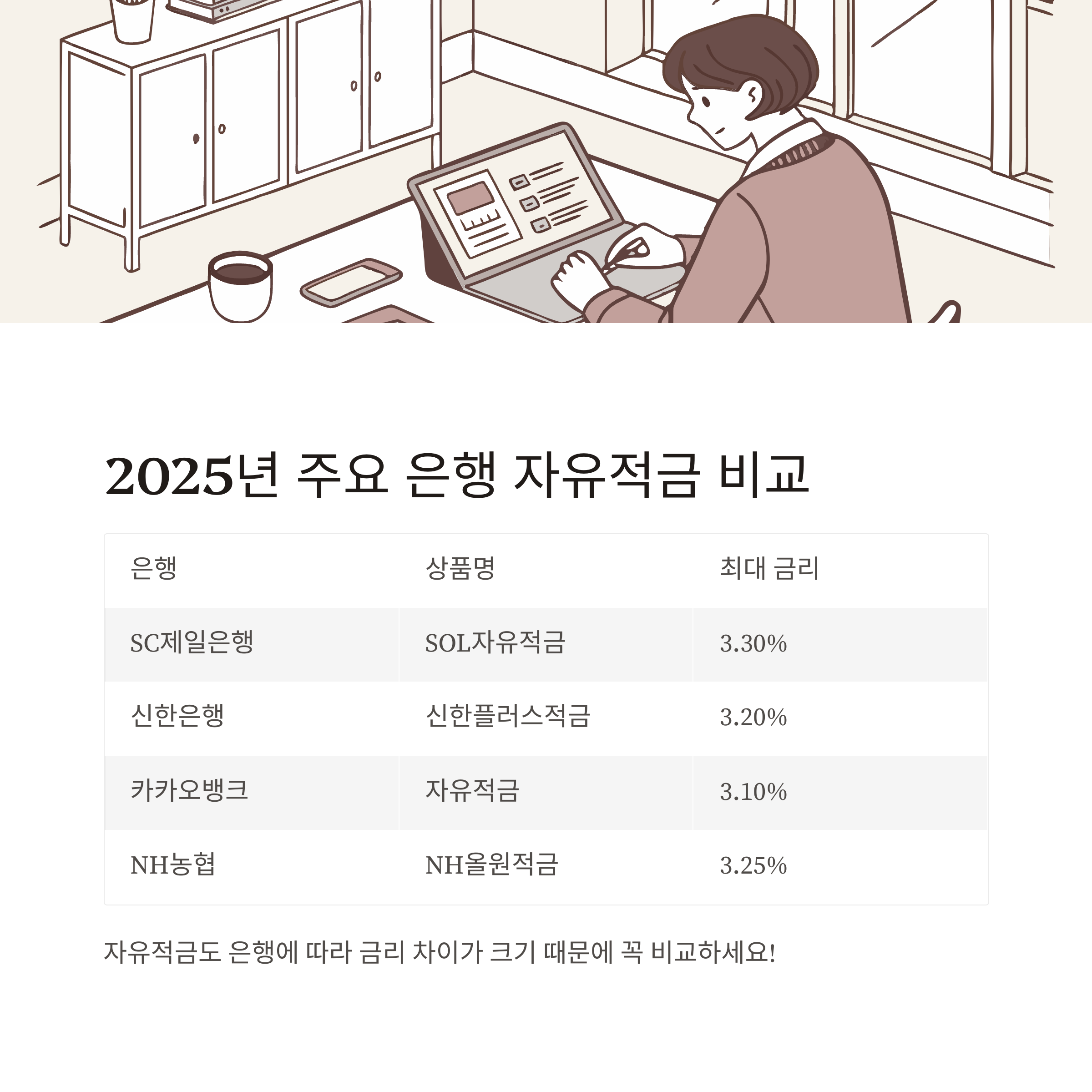 비교 분석: 주요 은행 자유적금 금리 2025년 상반기
